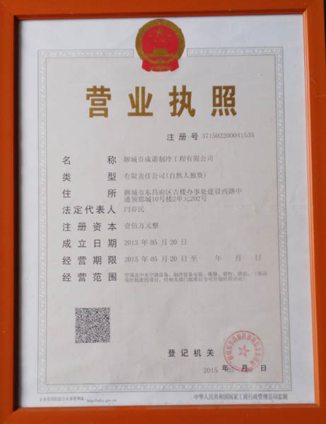 榮譽資質(zhì)-聊城冷庫_聊城冷庫安裝_聊城冷庫維修_聊城艾默生谷輪_聊城制冷_聊城智能物聯(lián)網(wǎng)冷庫_聊城壓縮機維修_聊城市成諾制冷